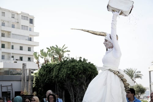 The International Association for Creation and Training in Alexandria created 2012 the JOY PROJECT in Alexandria. With this project the organizers cultivate happiness and joy in the environment and create the atmosphere for the people to practise it through arts. They invite artists from all over the world to perform but also give workshops for the citizens of Alexandria. GROTEST MARU was invited with the performance PARADA NARRNIA to the Backstreet Festival 2015. The warm welcome and atmosphere of the city and festival touched me from the first moment. A special country with a special culture.